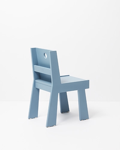 オランダ発、シンプルでスタイリッシュな子ども家具メーカー、STEK。テーマカラーに合わせた鮮やかなブルーが、子ども部屋のアクセントに。背もたれには絵本やノートを収納できる。