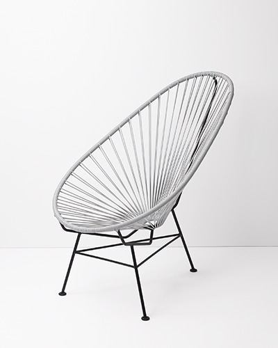メキシコのリゾート地で60年代から愛用されていたアウトドアチェアをベースに、リデザインされたメトロクスのアカプルコチェア。スチールのフレームに柔軟性のあるコードを巻き付けて、身体が包み込まれるように座り心地がいい。授乳チェアにもぴったり。