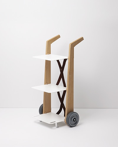 遊び心あふれるユニークなプロダクトを手がけるドイツのブランド、アウアーベルグ。そのまま本棚にもなるし、たくさんの絵本を乗せて好きな場所へ移動も可能。スチールとウッド素材、後ろにはレザーのバンド付き。