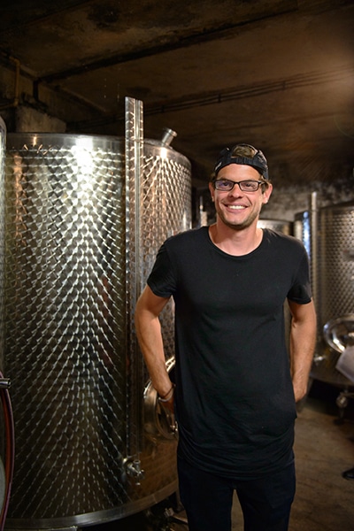 ジェイスン・グレーベさんと小ぶりな醸造タンク。