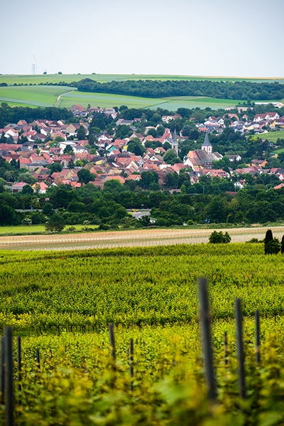 丘と丘の合間に可愛らしい村が。ラインヘッセンの典型的な風景。