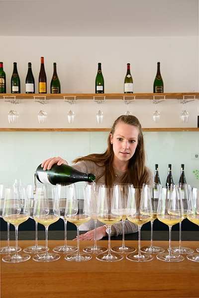 ヴァイングート・ヴィンターのワインをテイスティングしてみましょう。まずはグラウブルグンダー2015。グラウブルグンダーはピノグリのこと。ハチミツと白い花のピュアな香りに芝草のようなトーンが交じります。口の中では緻密さとテンションを感じます。一見親しみやすいけれど、飲むと、意外に奥深さがあって驚く、そういうワイン。