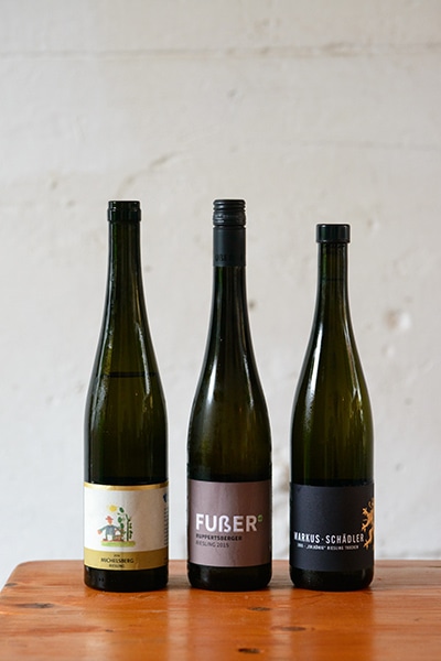 右からマルクスさん、ゲオルグさん、ヤンさんのワイン。