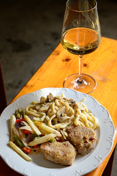 シュペッツレ(卵を練り込んだパスタ)にもリースリング。