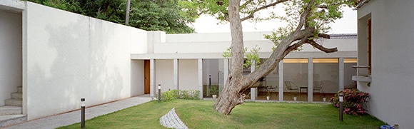 客室とレセプションに囲まれた中庭。前面がレセプション。Photo: Auberge De Oishi