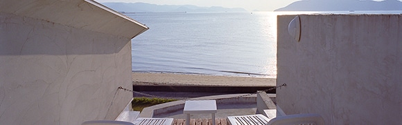 素敵な隠れ家オーベルジュを見つけました! 香川県高松市の繁華街から、車で20分ほど走った住宅地に、ひっそりと佇む真っ白なオーベルジュ。細い道をグングンと進み、高松の観光スポットのひとつ“長崎の鼻”に向かう閑静な一画の、曲がりくねった細い坂道に沿ってありました。大きな看板もなく、初めての私には見つけるのさえ難しかったのですが、建物は、やはりオーラを放っていました。ちなみに“長崎の鼻”は、瀬戸内海に突き出した屋島の最北端にあり、溶岩でできた突端のことだそう。風光明媚な観光地として、また夕陽のスポットとして知られ“香川観光25選”のひとつに選ばれています。