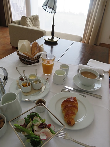 手作りの朝食はフランス風、おいしいパンとおいしいコーヒーに手作りジャムやとっておきの蜂蜜、そして新鮮野菜の選択。Photo: Kyoko Sekine