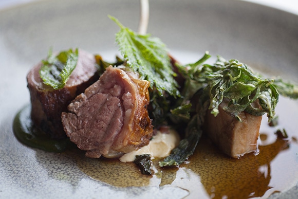バス海峡に浮かぶフリンダース島の乳飲み子羊のロースト。ソースはカラメライズしたヨーグルト。