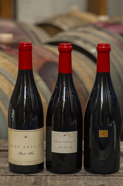 バス・フィリップのピノノワール3アイテム。左からエステート、プレミアム、リザーブ。リザーブは良作年のみ造られる。