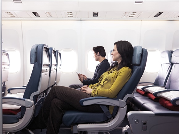 日本発着便全便で、足元のスペースにゆとりのある「デルタ・コンフォートプラス」をメインキャビン前方に配置。シートピッチは最大約10cm、リクライニング角度が1.5倍に。