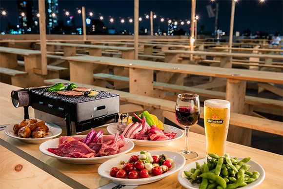 夜景を一望できる屋上で、DIYバーベキュー体験を。