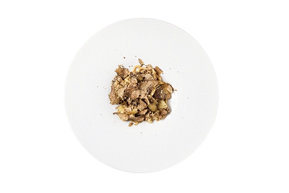 香ばしいサンマの風味と妖艶なトリュフの香りが、口中で絶妙なハーモニーを見せる大人の味のひと皿。パスタはトンナレッリを使用。(具材は季節によって異なります)