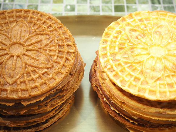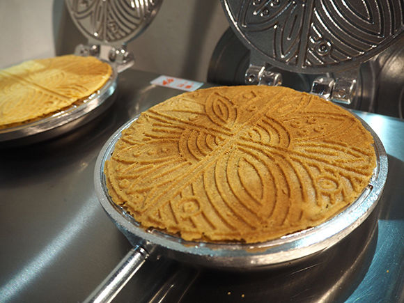 ワッフルの原型とも言われている、チャルダのサクサクした食感は、小麦粉、卵、牛乳、バターからなる生地を、鉄板で挟んで丁寧に焼き上げることで生み出される。素材そのもののシンプルな味わいが魅力で、トスカーナでは老若問わず広く愛されているという。