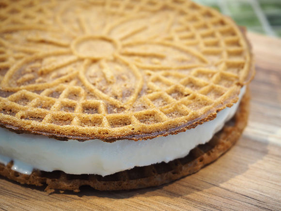 10月までの期間限定メニュー「アイスサンド」648円。クリスピーなチャルダにしっとりしたミルクアイスが好相性。エスプレッソ片手にかぶりつきたい。