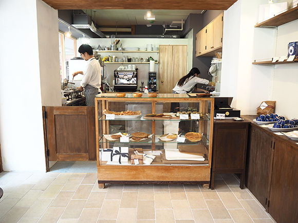 1枚1枚焼き上げていく作業を眺めるだけでも楽しい。甘い香りがふんわり漂うこじんまりした店内では、パスタや瓶物などイタリアン食材を販売するほか、イートインスペースを数席用意。