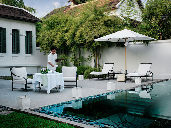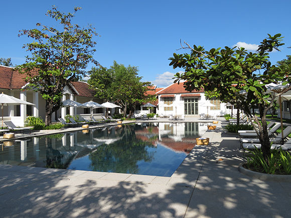 ロケーションは町の喧騒を離れた静かな環境にあり、豪奢なコロニアル建築として歴史をいまに伝えています。中庭のプールを囲んで周囲に点在するゲスト用のヴィラのほかに、スパ、ライブラリー、レストラン、ブティックなどがあり、滞在中は、「さすがアマン……」と思うことの連続でした。ホテルのアクティビティの中でも、早朝の暗いうちに参加する“托鉢”では、心洗われる思いがしましたし、ナイトマーケットの散策、寺巡りやメコン川下りなどもラオスらしい穏やかな時間でした。ほかにも、旧市街の散策でフランス風カフェでのお茶タイムや、民芸品のショッピングなど、わくわくしながら毎日が過ぎてゆきました。