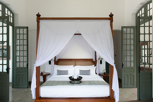 リゾートはフランス植民地時代から政府が使用していた建物であり、全15棟、客室24室の贅沢なヴィラで構成されています。そのうちの9棟はすでにユネスコ世界遺産により保護されていたために、改装や修復には特に慎重にならざるを得なかったといいます。