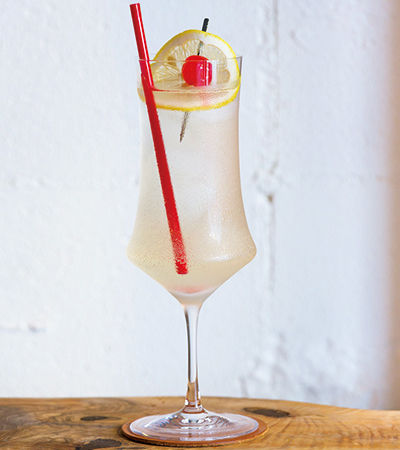 ジュニパーベリーやオレンジピールなど、15 種類もの成分が入った希少なジン、シブリングをトニックウォーターで割ったカクテル。甘やかな香りに誘われてするする飲んでしまいそう。「シブリング」¥1,620