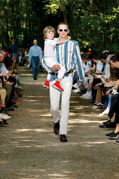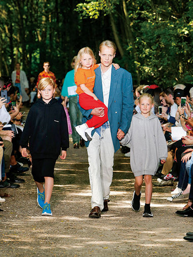 森の中を子連れで歩く、まるで休日のパパのようなモデルたち。バレンシアガの2018年春夏メンズコレクションでは、本物の家族をランウェイに登場させ、キッズウエアを発表した。人気のオーバーサイズフーディやTシャツ、スウェットパンツ、スニーカーがそのままミニサイズになったものも。子どもたちも早々とモードラバーになってしまいそう。