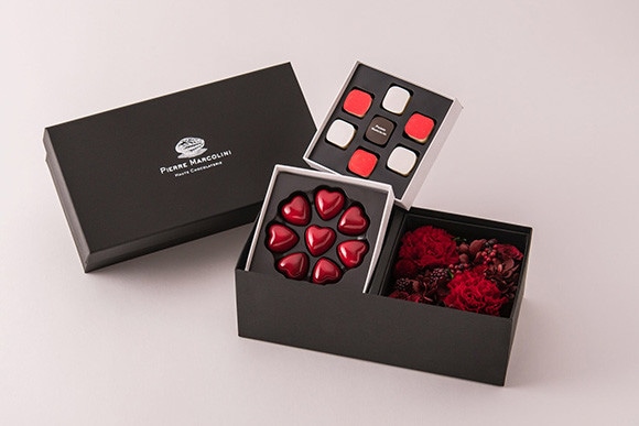 おいしいものに目がないお母さんには、ハートのショコラで日頃の感謝の気持ちを伝えてみては? ベルギー王室御用達のピエール マルコリーニでは、艶やかなカーネーションのプリザーブドフラワーに、定番人気の「クール フランボワーズ」と今年の新作「ソンジュ」を合わせたボックスセットがお目見え。フランス語で“夢”を意味する「ソンジュ」は、スペルト小麦などのスーパーフードを積極的に取り入れたユニークなショコラで、白赤それぞれに異なる香りと食感を味わえるのが魅力。そんな人気2シリーズを十分に堪能できる絶好のチャンスをお見逃しなく!