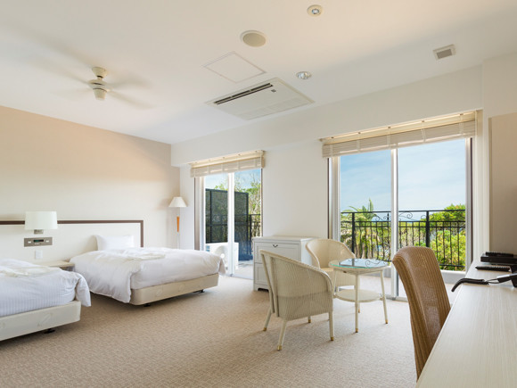 白を基調とした清潔感あふれるスーペリアルーム。長期滞在も可能。