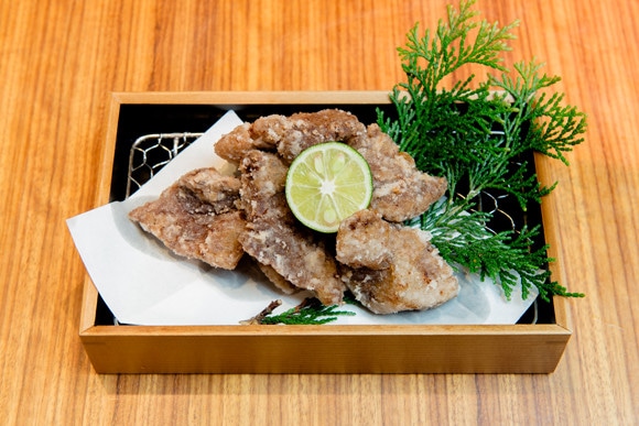 太地はクジラの産地としても有名。カラッと揚げたてを張りたい。くじらの竜田揚げ¥1,400