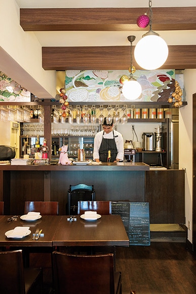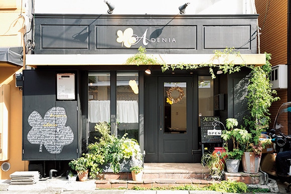 ワインラバーが集まるアデニアでは、グラスはスパークリングから白、赤、デザートワインまで。ボトルはニューワールドを中心に揃える。特に評判なのが昼だけのセットドリンク。店のおすすめグラスワインがワンコインで飲めるため、気軽なブランチ会にぴったり。チーズの塩気と玉ネギに潜んだバルサミコの酸味が食欲をそそる「キャラメルアップルとブルーチーズハンバーガー」や、素材の食感を残した「ギリシャ風 いろいろ野菜のマリネ」など、料理と酒の相性も抜群にいい。