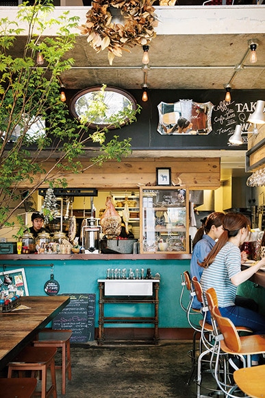 隅田川のほとりに立つ。靴店の倉庫を改装した店内は、吹き抜けの開放感が居心地のよさをぐんとアップする。