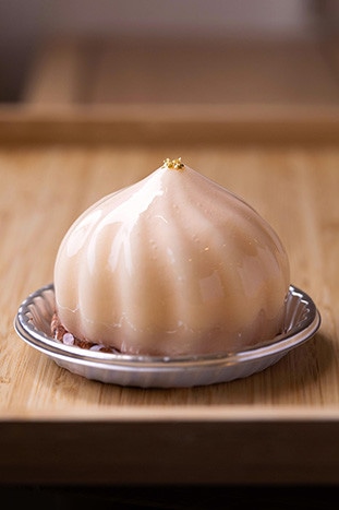 ドーム型の白桃ムースの中に、桃のジュレと香り高いアールグレイのブリュレがベストマッチ。「ペッシュ・E」¥400