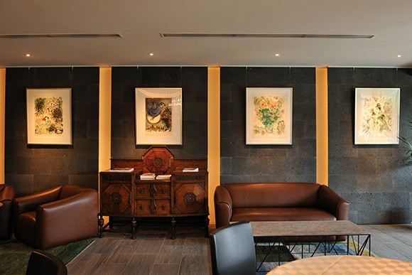 ラウンジに飾られたシャガール。反対側にはピカソの絵が並ぶ。