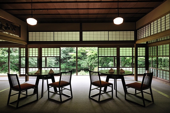 東京ドーム1.5個分の広大な土地に、ホテル、ヴィラ、ベーカリー、スパなどを有するネスト イン。なかでも、築105年の日本家屋、俵石閣での食事は旅のハイライト。江戸ガラス越しに広がる庭園を眺めながら、昆布や野菜から取る出汁を巧みに使い分けた炊き合わせや椀をいただける。美肌の湯といわれる白濁の温泉で芯から温まったあとは、テラス付きラウンジで音楽を聴いたり、週末限定の焚き火やバーでカクテルを嗜むなど、思い思いの時間を過ごせる。