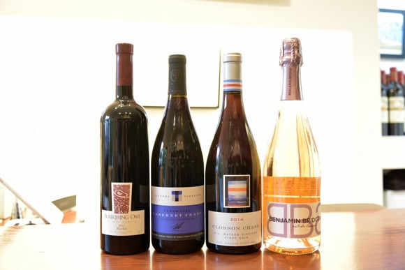 さて、ジェイミーさんに代表的な産地からおすすめを選んでもらった。左から、フルーティで複雑な味わいと完成度の高さを楽しめる、オカナガン・ヴァレーの「バロウイング アウル エステート ワイナリー/メルロー2013」¥5,200。ナイアガラにてバイオダイナミック製法で作られたオーガニックワイン、「トーズ ワイナリー/ランドリー・ヴィンヤード カベルネフラン2013」¥5,400。PECを代表する生産者がナイアガラにある畑で手がける「クロッソン チェース ヴィンヤーズ/K.J.ワトソンヴィンヤード ピノ・ノワール2014」¥4,500。シャンパーニュの伝統製法で作られる、カナダ最高峰のスパークリングワイン、「ベンジャミン・ブリッジ/ロゼ 2013 メソッド クラシック」¥6,200。