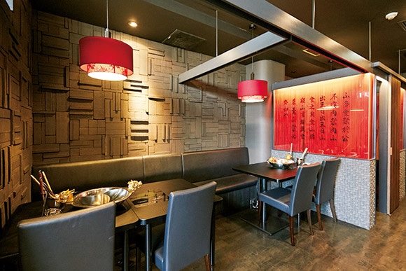 オープンは今年4月。五反田店より落ちついた雰囲気の店内。テラス席もあり、秋風に吹かれながらの火鍋もオツ。酸白湯スープが加わる計3種のスープが楽しめるコースも。