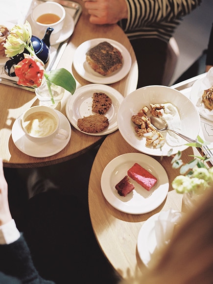 カフェでは北欧スタイルのフレッシュでシンプルなサンドイッチやサラダ、ホームメイド・パティスリーなどをイートインできる。フラットホワイトをとって、ここで観光で疲れた足を休めるのも、いいだろう。