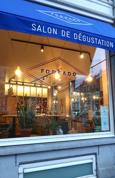 トラムを降りたら、進行方向をこのブルーが見えるところまで歩く。このティールームを左折するとオルタ邸がある。