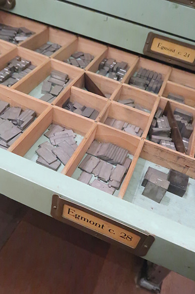 書体ごとに活字を収めるヴィンテージの引き出し。