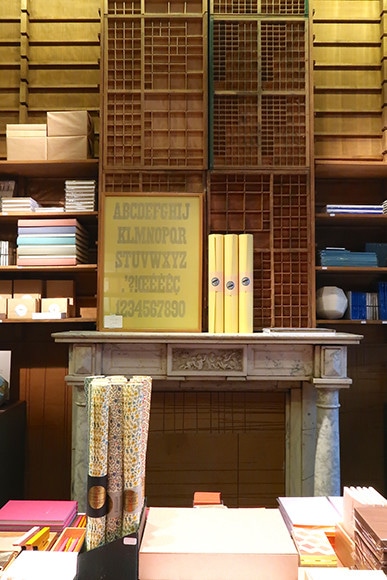 ここまで足を伸ばしたなら、同じ通りにあるル・ティポグラフのブティックを訪問してみよう。職人の手が感じられる活版印刷の味わいが魅力のカード、封筒といったステーショナリーが待っている。商品は日本でも一部販売されているけれど、暖炉があり、活版印刷のどこかのアトリエでその昔使われていた活字の引き出しの棚があって、といった店内を見るだけでも心弾む。その引き出しを開けると、鉛の活字が入っていたりするのだ。