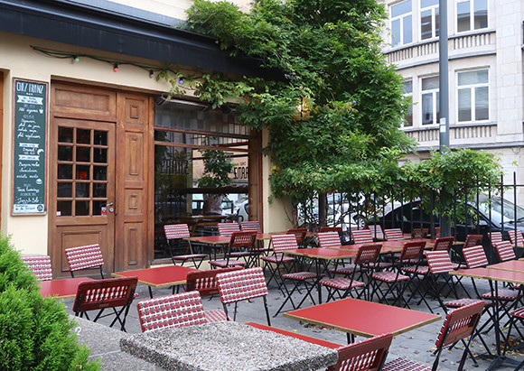 Franz Merjay通りに入ると、6番地でパン屋Matinal(木〜日 7時~16時。www.matinal.be)の前を通る。エヴァも推薦のこのお店は古代小麦を使って焼き上げるという。パンはどれもおいしいそうだ。また、ひと休みしたい、小腹を満たしたいと思ったら、エヴァのブティックに到着する手前の右手にある、Chez Franz(シェ・フランツ)へ。暖かい季節になったらテラス席が快適そうな、気軽なビストロだ。