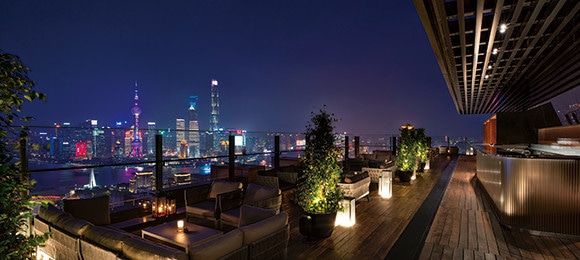 屋上にある、ラ・テラッツァからは、ブルガリ ホテル 上海の街並を360度見晴らせる。