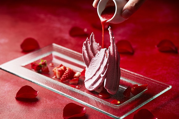 ホテルで優雅に楽しむ、期間限定のストロベリーアフタヌーンティー。赤とピンクに彩られたイチゴ尽くしの空間で、心躍るひとときを堪能したい。