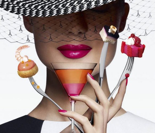 フォションのイメージアイコン、フューシャピンクなリップやスイーツ、カクテル。