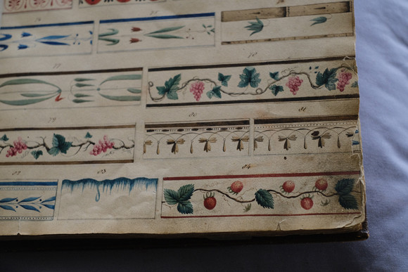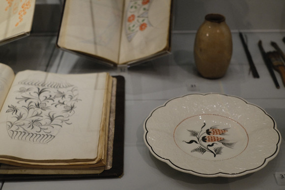 ブランドの真髄を知るためにまず訪れたのは、ウェッジウッド美術館。ここには創業当時からの膨大な数のパターンが保管されている。創業間もない頃に作られた、第1冊目のパターンブックを見せてもらった。手書きで緻密に描かれた絵柄は260年も前に描かれたとは思えないほど鮮やかで、デザインはいま見ても美しく鮮烈だ。美術館のゲイ・ブレイク=ロバーツ館長によると、かつてパターンブックは2冊ずつ存在していたのだそう。1冊は顧客に直接見せてパターンを決めるために使い、もう1冊は工場に置かれ、指定されたパターンを製造する際の参照用に使われたのだ。