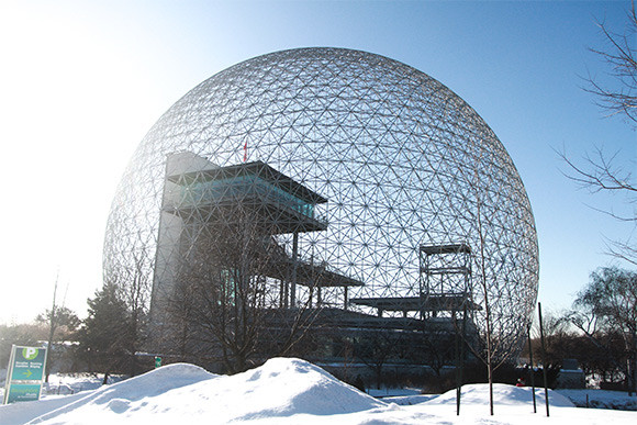 「宇宙船地球号」といえば現代のナチュラリストやエコロジストに大きな影響を与えた概念だ。それを提唱した、建築家で思想家のバックミンスター・フラーが設計したのが、モントリオールの中心部、サンテレーヌ島のジャン・ドラポー公園内にある「バイオスフィア」だ。