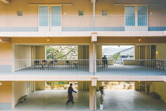 「新道アパート」という名の集合住宅だった廃墟が、文化発信地としての多目的施設兼宿泊施設として新たに息を吹き込まれた。リノベーションを手がけたのはインドのスタジオ・ムンバイ。車両が入れない坂の中腹にあるため、資材の運搬から施工まで、すべての工程が手作業で行われた。プロジェクトの始動から施設の完成までにかかった歳月は丸4年。たくさんの人の想いが詰まったこの場所で、尾道のいまを見つめたい。