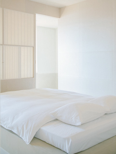 ハタノワタルさんの手漉き和紙が床から天井まで貼られた客室は、まるで繭に包まれているかのような心地よさ。