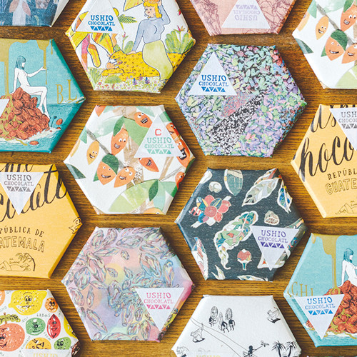 地域や農園ごとに異なる豆のおいしさが楽しめる、ビーントゥバーのヴィーガンチョコレート。尾道在住の若手作家が手がける鮮やかなパッケージも魅力。¥756〜