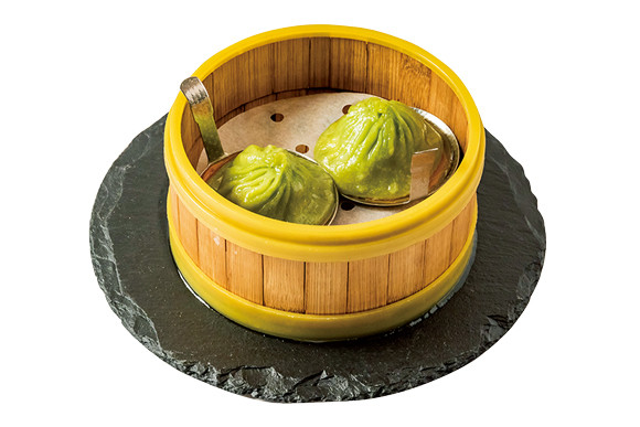 「小籠包」¥626。皮にはホウレンソウが練り込まれている。