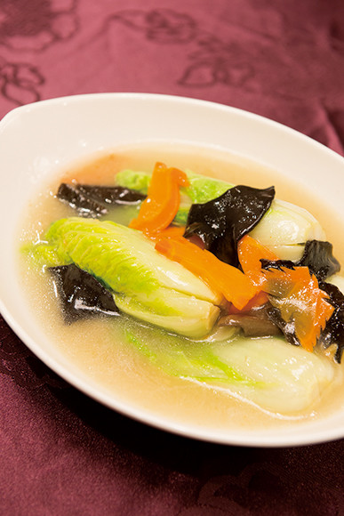 台南では一般的な小さな白菜を、豚骨や魚の出汁で炒めた「扁魚娃娃菜」中240元
