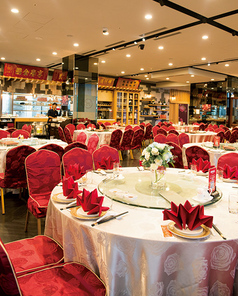 結婚披露宴なども行われる、広々とした店内。家族のお祝い事で利用する人も多い。