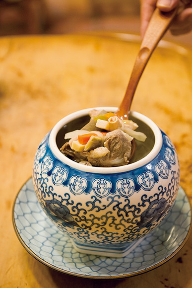 台湾では食事の締めにスープをいただく。野菜と豚の内臓スープ「捆菜湯」は、奥深く優しい味わいでお腹にすっとおさまる。